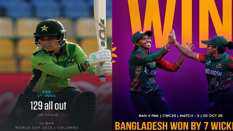 آئی سی سی ویمنز ورلڈ کپ میں بنگلہ دیش ویمنز نے پاکستان ویمنز کو 7 وکٹوں سے شکست دیدی۔یہ 17 ویمنز ون ڈے انٹرنیشنل میچوں