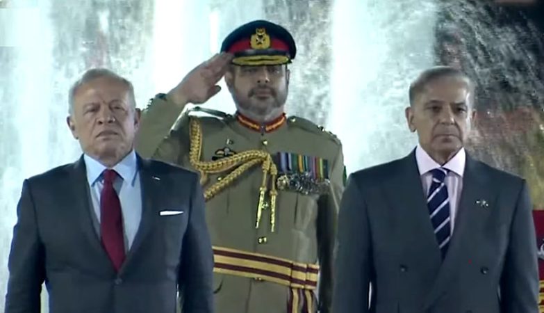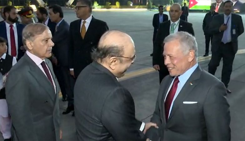 اردن کے شاہ عبد اللہ دوم ہفتہ کو اسلام آباد میں وزیرِ اعظم ہاؤس پہنچے جہاں وزیرِ اعظم محمد شہباز شریف نے ان کا شاندار