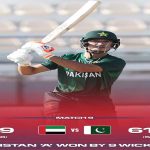 ایشیا کپ رائزنگ سٹارز، پاکستان کی مسلسل تیسری جیت، یو اے ای کو 9 وکٹوں سے ہرا دیا
