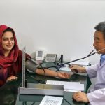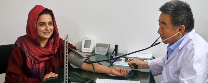 اسلام آباد میں قائم روایتی چینی طب کے مرکز، پاکستان چھی ہوانگ کی سینئر نرس ثنا خان معمول کے طبی معائنے اور علاج کے لئے