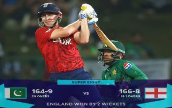 پاکستان اور انگلینڈ کے درمیان تین ٹیسٹ میچوں کی سیریز کے کراچی میں جاری تیسرے ٹیسٹ میچ میں انگلینڈ کی ٹیم نے پاکستان کی جانب سے جیت کیلئے دیئے گئے 167 رنز کے ہدف کے تعاقب میں تیسرے روز میچ ختم ہونے تک دو وکٹوں کے نقصان پر 112 رنز بنا لئے تھے اور اسے جیت کیلئے مزید صرف 55 رنز درکار ہیں جبکہ اس کی آٹھ وکٹیں باقی ہیں، جس وقت تیسرے دن کا کھیل ختم ہوا تو وکٹ پر کپتان بین سٹوکس دس اور بین ڈکیٹ 50 رنز کے ساتھ موجود تھے، قبل ازیں پاکستان کی پوری ٹیم اپنی دوسری اننگز میں صرف 216 رنز پر ڈھیر ہو گئی، پاکستان کی جانب سے بابر اعظم 54، سعود شکیل 53 رنز کے ساتھ نمایاں رہے جبکہ عبداللہ شفیق نے چھبیس، شان مسعود نے چوبیس، اظہر علی نے صفر، محمد رضوان نے سات، آغا سلمان نے اکیس، فہیم اشرف نے ایک، نعمان علی نے پندرہ، محمد وسیم نے دو اور ابرار احمد نے ایک سکور ناٹ آئوٹ بنائے، بارہ رنز فاضل کے تھے، انگلینڈ کی جانب سے ریحان احمد نے اپنے پہلے ہی ٹیسٹ میچ کی دوسری اننگز میں پانچ وکٹیں حاصل کرکے عالمی ریکارڈ بھی بنا ڈالا وہ پہلے ہی ٹیسٹ میچ میں پانچ وکٹیں حاصل کرنے والے دنیا کے کم عمر ترین بائولر بھی بن گئے ہیں، ان کے علاوہ جیک لیچ نے تین، جو روٹ اور مارک ووڈ نے ایک ایک وکٹ حاصل کی، انگلینڈ کی دوسری اننگز میں آئوٹ ہونے والے زاک کرالے نے 41 اور ریحان احمد نے دس رنز بنائے، دونوں کو ابرار احمد نے آئوٹ کیا۔
